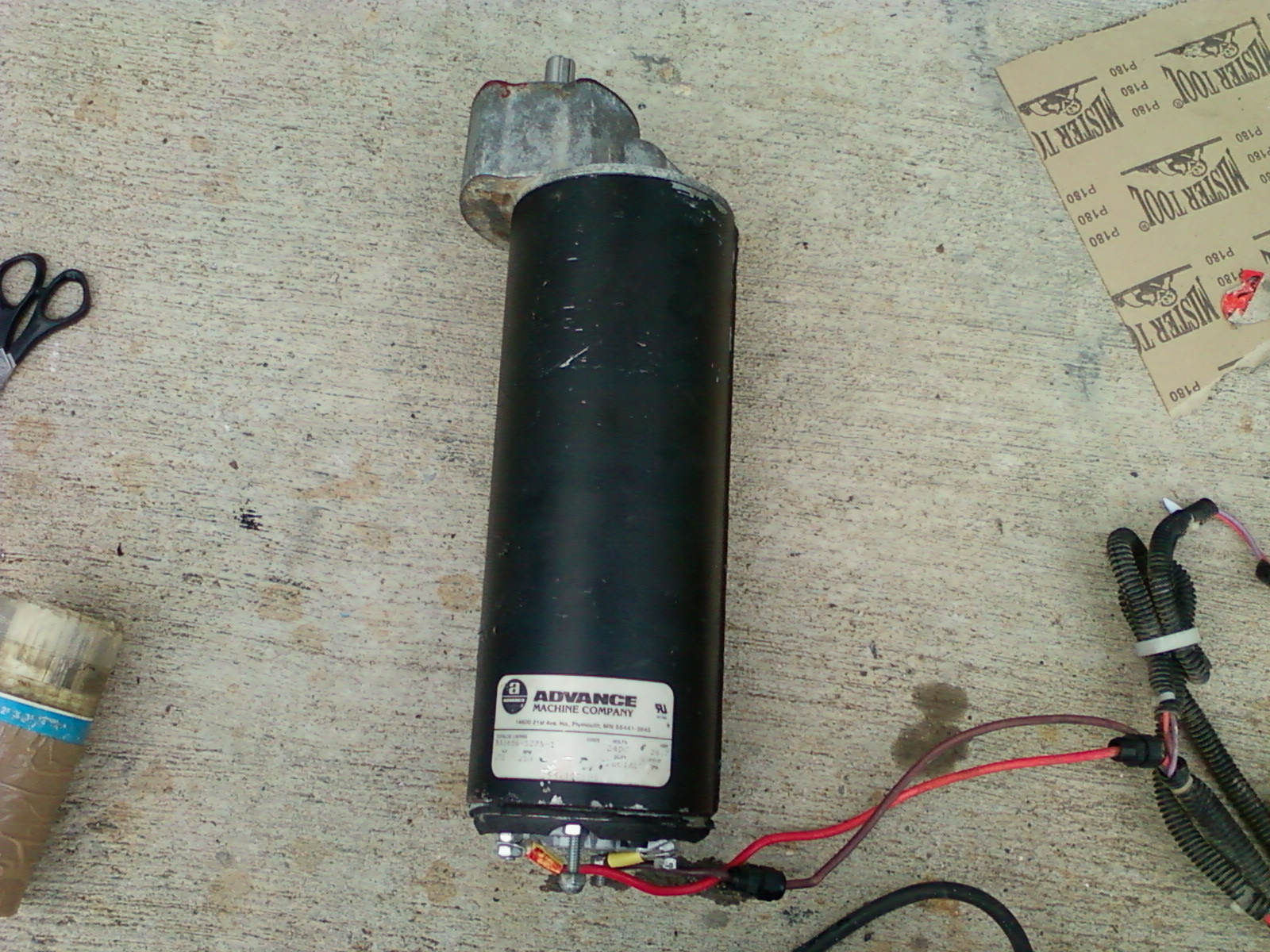 Χρησιμοποίησα λόγω τροχαλιών 1:2 ώστε να πάρω τις στροφές που θέλω τελικά. Το μοτέρ είναι πάρα πολύ βαρύ και θέλει ενισχυμένη βάση για να στηριχτεί και ενισχυμένα καλώδια τροφοδοσίας με ρεύμα σαν αυτά που χρησιμοποιούμε όταν μένει ένα αυτοκίνητο από μπαταρία και συνδέουμε την μπαταρία του με μια άλλη για να πάρει μπροστά.