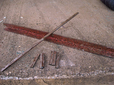 Θα χρειαστούμε μια σιδερογωνιά από πάσσαλο περίφραξης, και μεταλλικές ράβδους μήκους 10 cm και πάχους 1cm, ίσως από τα κάγκελα κάποιου παλιού μπαλκονιού