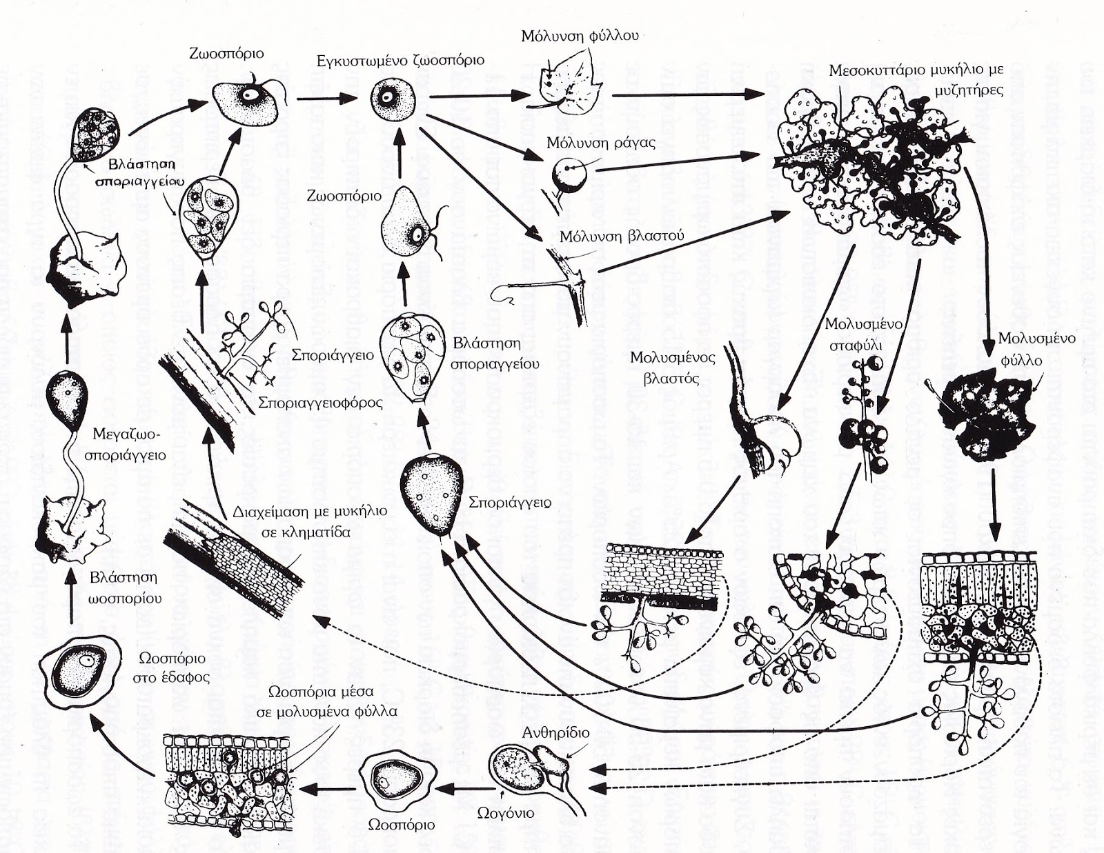 Ο κύκλος του περονοσπόρου της αμπέλου ( κατά Agrios )