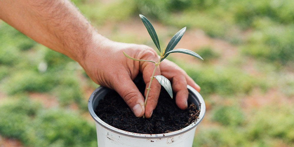 Πώς φυτεύουμε τα φυλλοφόρα μοσχεύματα της ελιάς στη γλάστρα; Φυτεύουμε τα φυλλοφόρα μοσχεύματα της ελιάς σε ατομικά πλαστικά γλάστράκια ή ειδικά μαύρα σακουλάκια φύτευσης, αφού πρώτα βουτήξουμε τη βάση του μοσχεύματος στο νερό και στη συνέχεια σε σκόνη ορμόνης ριζοβολίας. Η φύτευση των μοσχευμάτων γίνεται με τέτοιο τρόπο ώστε το πάνω μέρος του βλαστού με τα φύλλα να εξέρχεται απο το φυτόχωμα που θα φυτέψουμε. Μπορούμε να χρησιμοποιήσουμε ως υπόστρωμα φύτευσης φυτόχωμα γενικής χρήσης που προμηθευόμαστε από φυτώρια και γεωπονικά καταστήματα ή να φτιάξουμε δικό μας μίγμα ανακατεύοντας ίσα μέρη κομπόστ, τύρφης και περλίτη. Τοποθετούμε τα γλαστράκια σε περιβάλλον υψηλής υγρασίας για να ριζώσουν καλύτερα. Ο καλύτερος τρόπος είναι δημιουργώντας ένα μικρό θερμοκήπιο, όπου τα φυτά ποτίζονται με ειδικά μπεκ υδρονέφωσης, ψεκάζοντας δηλαδή με πολύ μικρά υδροσταγονίδια. Αν δεν μπορούμε να κάνουμε αυτή την κατασκευή, βάζουμε τα γλαστράκια μας σε σχετικά φωτεινό σημείο που δεν έρχεται σε απευθείας επαφή με τις ακτίνες του ήλιου και καλύπτουμε τα φυτά με μία νάυλον σακούλα. Τα καινούρια φυτά ελιάς μας, ανάλογα με την ποικιλία, θα είναι έτοιμα για μεταφύτευση μετά από 2 με 3 μήνες.