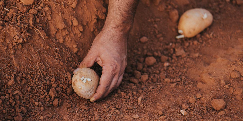 Πώς προετοιμάζουμε το χωράφι για να φυτέψουμε πατάτες; Πριν τη φύτευση της πατάτας στο χωράφι, είναι σωστό να απομακρύνουμε τα υπολείμματα παλαιάς φυτείας πατάτας ή άλλης καλλιέργειας που έχει προηγηθεί. Αποφεύγουμε τη συνεχή καλλιέργεια πατάτας ή άλλων φυτών που ανήκουν στην ίδια οικογένεια με την πατάτα, δηλαδή των σολανωδών, όπως (ντομάτα, μελιτζάνα, πιπεριά) στο ίδιο χωράφι, καθώς αναπτύσσονται ασθένειες και έντομα. Κατά τη φύτεμα της πατάτας, απαιτείται έδαφος σχετικά ψιλοχωµατισµένο, με κανονική υγρασία, χωρίς μεγάλους σβόλους. Για να εξασφαλίσουμε μια ποιοτική και αποδοτική παραγωγή, ενσωματώνουμε στο έδαφος κομπόστ, καλοχωνεμένη κοπριά και βιολογικό λίπασμα με υψηλή περιεκτικότητα σε κάλιο. Θα πρέπει να γνωρίουμε ότι η καλλιέργεια της πατάτας συντελεί στην εξάντληση του χωραφιού, ειδικά σε αποθέματα καλίου. Φυτεύουμε τον πατατόσπορο σε βάθος 15-20 εκατοστών με αποστάσεις φύτευσης 70-80 εκατοστά μεταξύ των γραμμών και 30-35 εκατοστών μεταξύ των φυτών. Πώς μπορούμε να φυτέψουμε πατάτες στο μπαλκόνι; Κι αν δεν έχουμε κήπο ή χωράφι, κανένα πρόβλημα! Μπορούμε πολύ εύκολα να φυτέψουμε πατάτες στο μπαλκόνι μας! Επιλέγουμε μια αρκετά μεγάλη γλάστρα, ένα σάκο φύτευσης ή μπορούμε να αυτοσχεδιάσουμε χρησιμοποιώντας για παράδειγμα ένα βαρέλι, τελάρα ή κλούβες και τα τοποθετούμε σε ηλιοφανή θέση του μπαλκονιού μας για να μας δώσει καλή παραγωγή. Τοποθετούμε μια στρώση χαλικιού στη βάση του σάκου ή της γλάστρας για να εξασφαλίσουμε καλή στράγγιση του νερου και τοποθετούμε αφράτο φυτόχωμα σε ύψος περίπου 20 εκατοστών από τη βάση. Φυτεύουμε 3-4 πατατόσπορους και σκεπάζονυμε με μία στρώση φυτοχώματος πάχους 10 εκατοστών. Όταν τα φυτά της πατάτας γίνουν περίπου 20 εκατοστά σε ύψος, προσθέτουμε άλλη μία στρώση αφράτου φυτοχώματος πάχους 10 εκατοστών. Σε 15-20 μέρες που τα φυτά θα έχουν μεγαλώσει κι άλλο επαναλαμβανουμε τη διαδικασία προσθέτοντας άλλη μία στρώση φυτοχώματος.