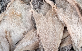 Τα αλιεύματα εκτίθενται στον αέρα κυρίως κατά τούς θερινούς μήνες, σε μέρη προστατευόμενα από υψηλές υγρασίες, έντομα και ζώα. Μετά από λίγες μέρες χάνουν το μεγαλύτερο μέρος του νερού που περιέχουν. Η συντήρηση τους γίνεται σε ξηρά μέρη.Τεχνητή ξήρανση.