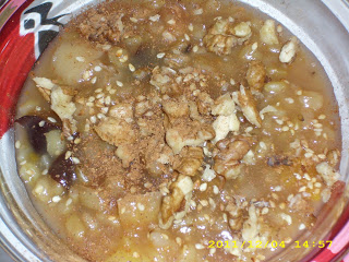 Μην βάζετε τα καρύδια στο βράσιμο γιατί βγάζουν το λάδι τους και δίνουν έναν ελαφρά ταγγισμένο τόνο στην τελική γεύση. Προσθέστε τα από πάνω μαζί με το σουσάμι και την κανέλα.
