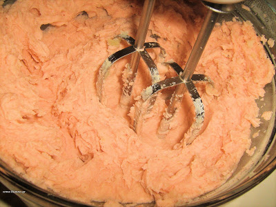 Παίρνουμε 50 δράμια (88 γραμμάρια) ταραμά, 25 δράμια (44 γραμμάρια) ψίχα ψωμιού βρεγμένη, 200 δράμια (354 γραμμάρια) λάδι, χυμό λεμονιού και λίγο ξύδι.