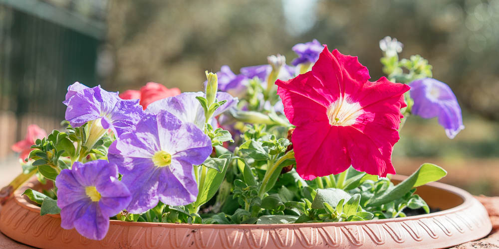 Οι πετούνιες είναι το κατάλληλο λουλούδι για να απολαμβάνουμε έντονα χρώματα όλο το καλοκαίρι. Χαμηλό ανθόφυτο με πλούσια ανθοφορία και εντυπωσιακούς χρωματικούς συνδυασμούς, η πετούνια δίνει άλλη διάσταση στον κήπο αλλά και στο μπαλκόνι μας. Με ύψος που φτάνει τα 20-50 εκατοστά, η πετούνια διακρίνεται από συμπαγή, πλούσια βλάστηση και γρήγορη ανάπτυξη. Τα άνθη της πετούνιας έχουν διάμετρο 10-15 εκατοστών και χαρακτηρίζονται από παρατεταμένη ανθοφορία που διαρκεί από τις αρχές της άνοιξης μέχρι τα τέλη φθινόπωρου. Υπάρχουν πολλές ποικιλίες και είδη πετούνιας για να επιλέξουμε να φυτέψουμε στον κήπο και στις γλάστρες μας. Πετούνιες με μικρότερα ή μεγαλύτερα άνθη, νάνες ή ψηλότερες για να φυτέψουμε σε παρτέρια, μονόχρωμες ή δίχρωμες, καθώς και η ξεχωριστή μαύρη πετούνια. Υπάρχουν ακόμα έρπουσες ποικιλίες, οι γνωστές σερφίνιες, ιδανικές για εντυπωσιακά κρεμαστά καλάθια και πολύχρωμη εδαφοκάλυψη. Τι συνθήκες θέλουν οι πετούνιες για να ευδοκιμήσουν; Οι πετούνιες ταιριάζουν απόλυτα στις κλιματικές συνθήκες της χώρας μας, καθώς απαιτούν μεγάλη ηλιοφάνεια και έχουν μικρές απαιτήσεις σε νερό. Όταν συνυπάρχουν κι άλλα φυτά στη γλάστρα, φυτεύουμε τις πετούνιες στην μπροστινή σειρά για να δέχονται πλούσια ηλιοφάνεια και να μας χαρίσουν πλούσια ανθοφορία. Όταν φυτεύουμε τις πετούνιες στο έδαφος χρειαζόμαστε καλοσκαμμένο χώμα και ενσωμάτωση κομπόστ. Αν η φύτευση γίνεται σε γλάστρα ή ζαρντινιέρα, επιλέγουμε φυτόχωμα πλούσιο σε θρεπτικά συστατικά και παράλληλα εξασφαλίζουμε καλή αποστράγγιση, τοποθετετώντας μια στρώση με χαλίκια ή βότσαλα στη βάση της γλάστρας.