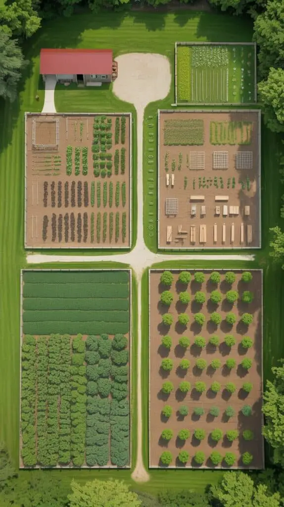 Για μια οικογένεια με 5 στρέμματα, τοποθετήστε το σπίτι στο κέντρο, περιβάλλοντας το με βότανα και λαχανικά για εύκολη πρόσβαση. Στη Ζώνη 2, ενσωματώστε κότες και μέλισσες για φυσική γονιμοποίηση. Πλεονεκτήματα: Μείωση αποβλήτων, αύξηση παραγωγής κατά 30%.