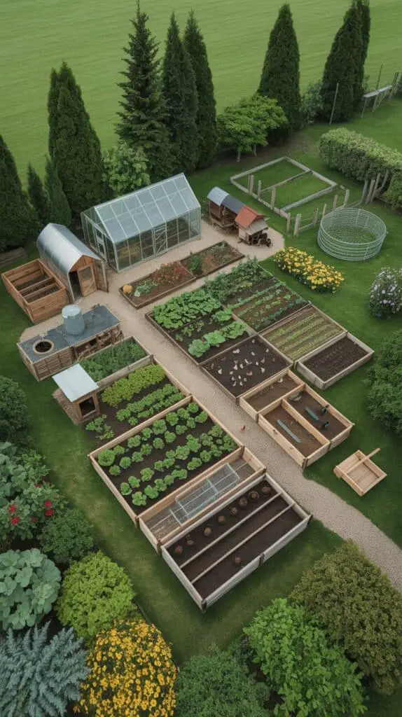 .Αναλυτικά, ξεκινήστε με ανάλυση εδάφους. Φυτεύστε πολυετή φυτά όπως μηλιές και βατόμουρα για μακροπρόθεσμα οφέλη. Συνδυάστε με υδροπονικά συστήματα για εσωτερική καλλιέργεια χειμώνα. Για παιδιά, δημιουργήστε εκπαιδευτικούς χώρους όπου μαθαίνουν composting. Στην Ελλάδα, προσαρμόστε σε μεσογειακό κλίμα με ελιές και αμπέλια. Συνολικά, αυτή η διάταξη εξοικονομεί νερό κατά 50% μέσω βροχοσυλλογής.