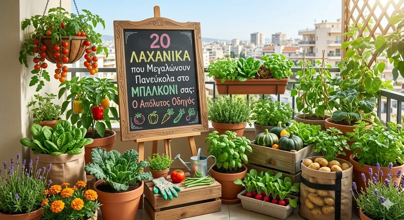 Η καλλιέργεια λαχανικών στο μπαλκόνι έχει γίνει δημοφιλής για όσους θέλουν φρέσκα, υγιεινά προϊόντα χωρίς να χρειάζονται μεγάλο κήπο. Με λίγες γλάστρες, κατάλληλο χώμα και σωστό φως, μπορείς να παράγεις νόστιμα λαχανικά όπως ντομάτες, πατάτες, μαρούλια, αγγούρια και πιπεριές. Η επιλογή κατάλληλων ποικιλιών, η σωστή φροντίδα, το πότισμα και η λίπανση είναι κλειδιά για πλούσια συγκομιδή. Αυτός ο οδηγός παρουσιάζει 20 λαχανικά που μεγαλώνουν εύκολα στο μπαλκόνι, παρέχοντας συμβουλές για κάθε φυτό, πρακτικές τεχνικές φύτευσης και οδηγίες για αρχάριους. Ειδικά για αστικά μπαλκόνια, θα μάθεις πώς να εκμεταλλεύεσαι τον χώρο, να αποφεύγεις τα κοινά λάθη και να απολαμβάνεις φρέσκα, βιολογικά προϊόντα όλο το χρόνο. Με αυτό τον οδηγό, η δημιουργία ενός μικρού αλλά παραγωγικού λαχανόκηπου στο μπαλκόνι γίνεται εύκολη, διασκεδαστική και εξαιρετικά ανταποδοτική για την υγεία και την τσέπη σου.